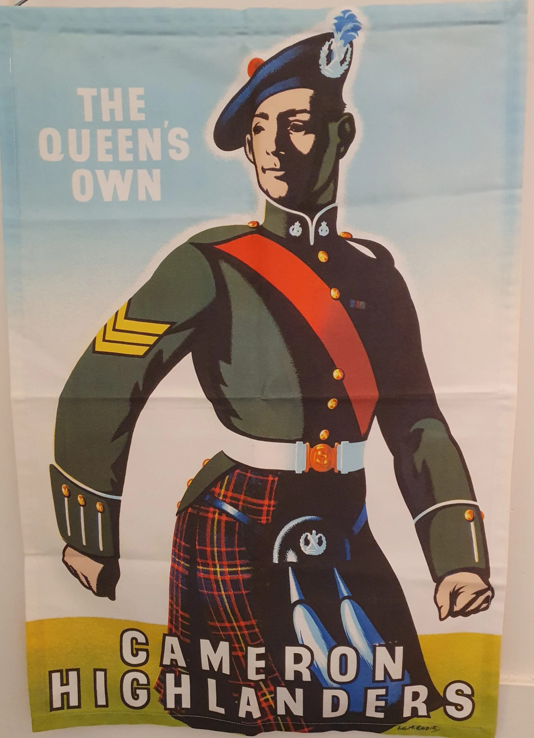 Tea towel featuring a recruiting poster for The Queen’s Own Cameron Highlanders